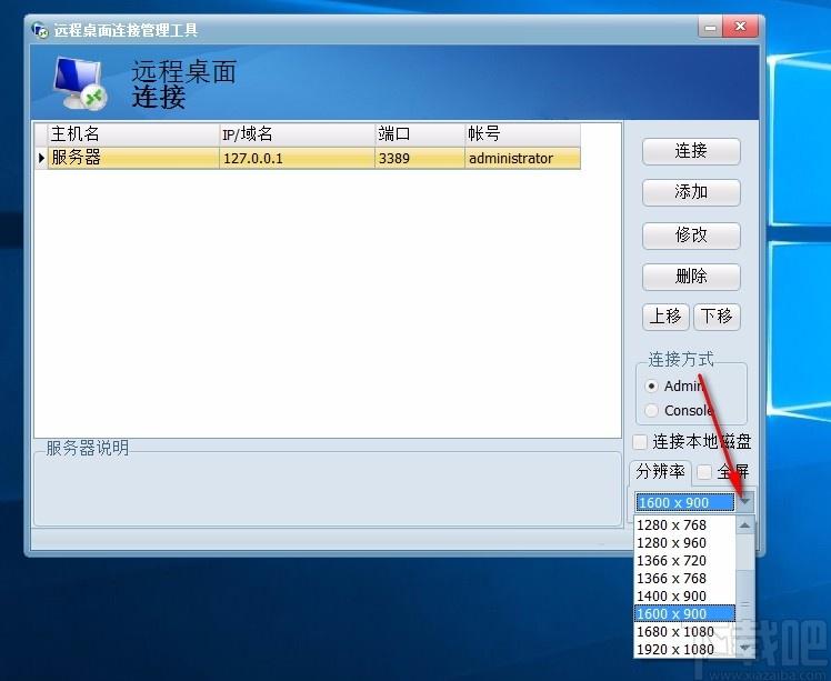 远程桌面连接管理工具是一款非常简单且实用的Windows远程桌面管理软件,通过这款软件,可帮助用户快速连接远程桌面,并可管理多个Windows服务器,软件界面简洁直观,结构清晰明了,使得操作也变得非常简单,只需添加服务器信息,输入登录密码,一键即可进行连接,快速且准确的连接远程桌面,使用起来非常方便,提供不同的连接方式,可连接本地磁盘,还可对分辨率进行设置,支持随时修改服务器信息,总而言之这是一款非常好用的软件,如果您有需要,那就赶快下载体验一下吧!